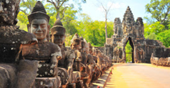 Showcasing an impressive stone tapestry of 54 gods and 54 demon gods playing out the Hindu legend of the ‘Churned Milk’; Angkor Thom was once a walled city and Capital from the 12th to 16th century, and bigger than any European city at the time.